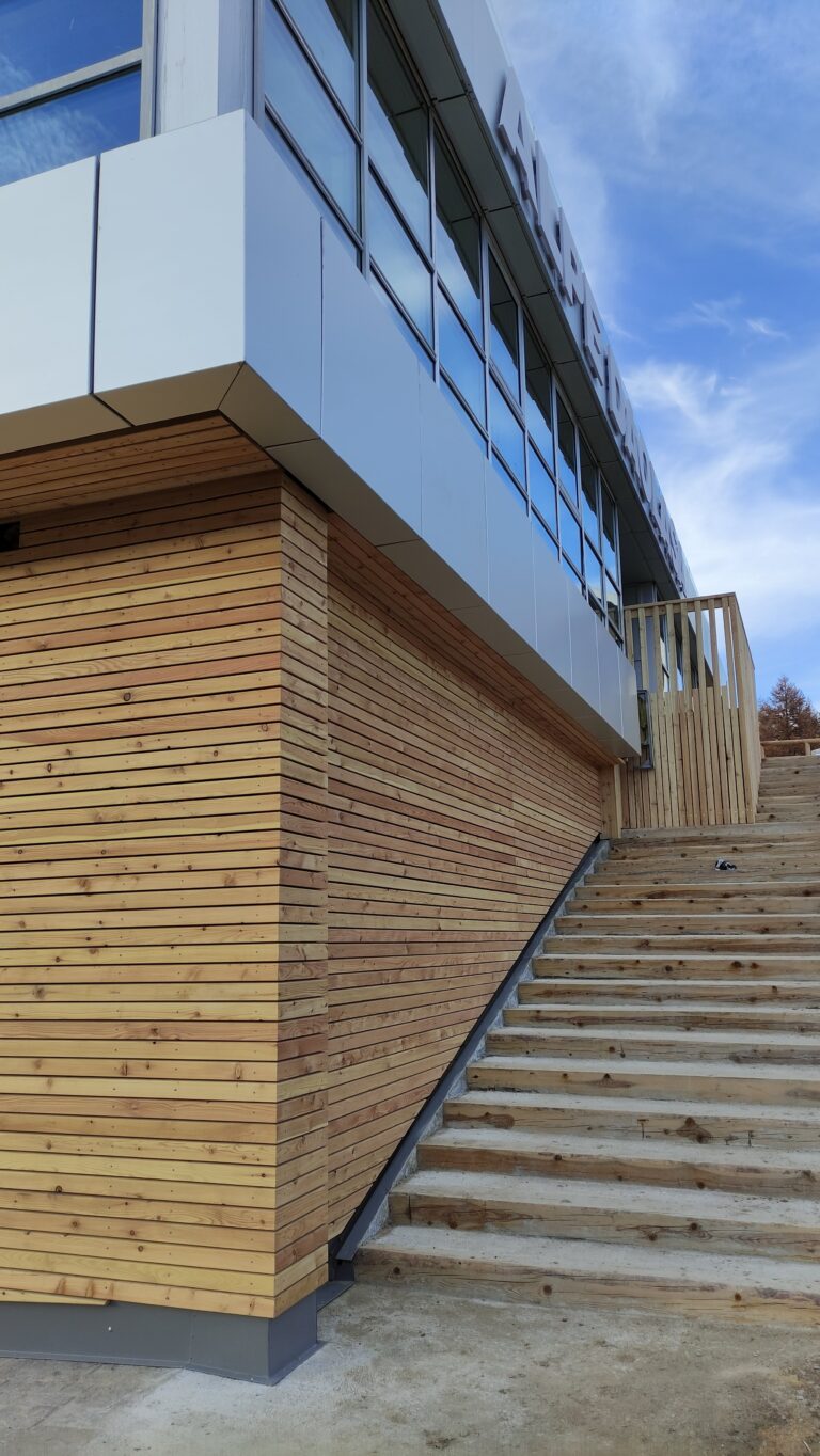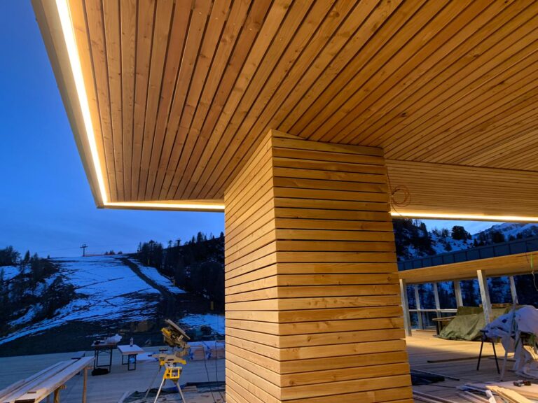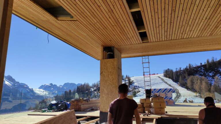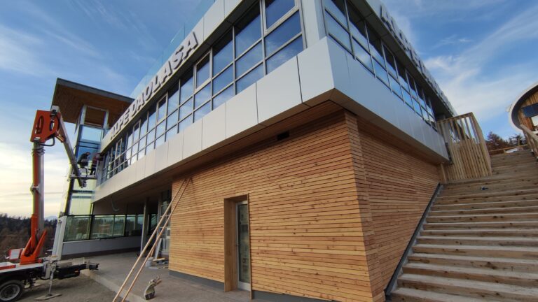 La realizzazione dell'ampliamento e della riqualificazione dell'arrivo della funivia a Daolasa è stato un progetto ambizioso. Per l'ampliamento, è stata adottata una struttura portante che combina carpenteria metallica e legno, con l'utilizzo di elementi lamellari e pannelli XLAM, successivamente rivestiti in dogato di larice. La stessa tipologia di rivestimento è stata impiegata per la riqualificazione della struttura esistente.