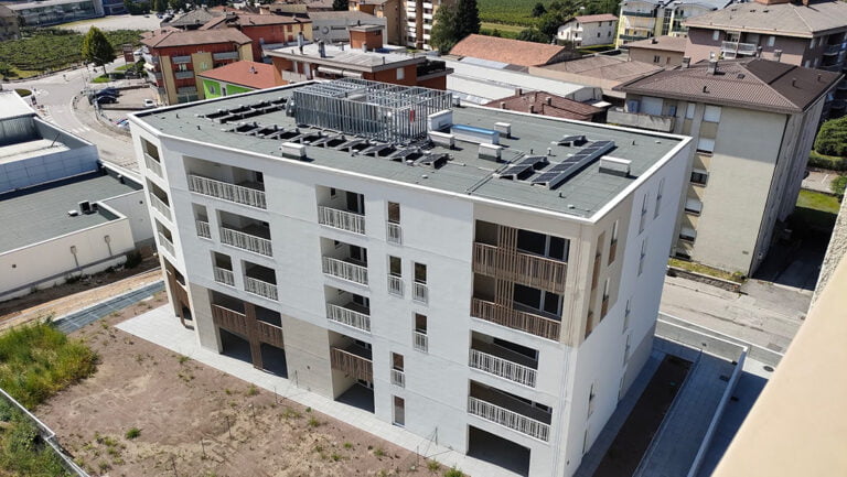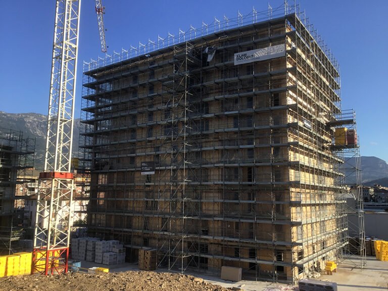 Realizzazione di 2 edifici multipiano rispettivamente di 5 e 9 piani a Rovereto (TN), la palazzina di 9 piani è tuttora l’edificio con struttura completamente in legno più alta d’Italia ed una tra le più alte d’Europa.