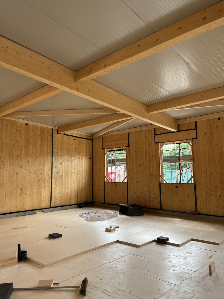 Realizzazione di una nuova struttura chiavi in mano di circa 150 metri quadrati destinata a ospitare la sede operativa dei vigili del fuoco. La scelta di utilizzare una struttura portante in XLAM e una copertura in pannelli sandwich ha favorito un rapido montaggio e un’ottima pulizia di cantiere. L'obiettivo principale del progetto è stato replicare in modo accurato l'aspetto dell'edificio preesistente adiacente, utilizzato come magazzino, al fine di creare un senso di continuità nel prospetto complessivo.
