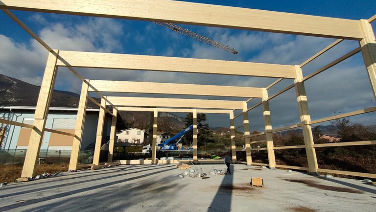 Realizzazione delle strutture in legno lamellare di una palestra scolastica a Caprino Veronese (VR).
