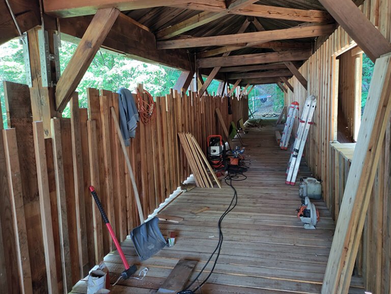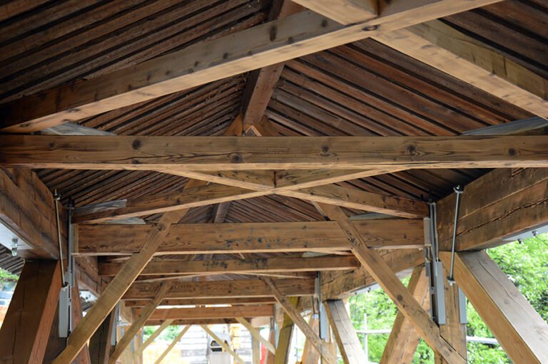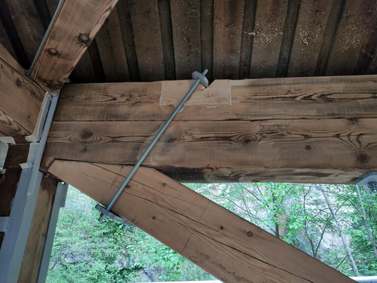 Intervento di riabilitazione di un ponte reticolare in legno massiccio di larice sul rio Tigia a Salorno (BZ).